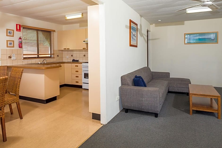 Our recently renovated Garden View Villa contains new furniture and consists of of three bedrooms, a fully self-contained kitchen, two bathrooms, Smart TV and large veranda. The master bedroom contains a queen bed and private bathroom. The second bedroom contains a queen bed and there is a full-size bunk bed in the third. The main bathroom adjoins both the second and third bedrooms. Please note that the price is based on 2 guests. Maximum occupancy is 6 (see Hotel Policies).
